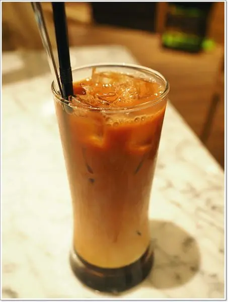 上菜速度頗快,跟朋友才聊一下天飲料就上來了。這是朋友點的三色奶茶,雖然我沒喝到味道,但看起來好像還不錯喝的樣子。