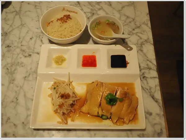 其實本來是想點肉骨茶飯的,怎知肉骨茶居然已經賣完了!(才中午ㄟ~~)只好換海南雞飯。