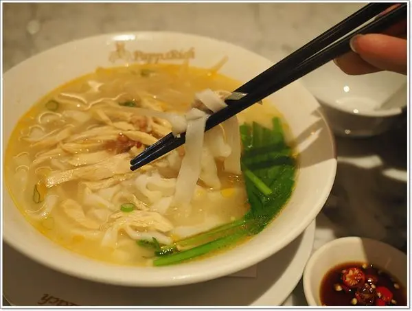 湯頭是大骨及蝦去熬出來的,蝦子味頗重;河粉跟馬來西亞的當地吃的OLDTOWN不太一樣,感覺比較偏向台灣的粄條,稍厚一點,但也不錯吃。