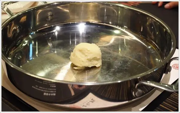 一開始先放入底油,免得變成吃鍋巴了! 沒特別問應該是牛油吧! 我們今天點的是最便宜的「陸上派對」$1150
