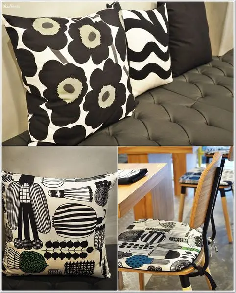 店內的裝潢及布置都很用心,沙發座位區都還有高密度的抱枕;上面的布料都來自設計師之手,所以一個沙發布要價都不斐呢! 其實蠻擔心煎肉的時候油會亂噴到枕頭上的。