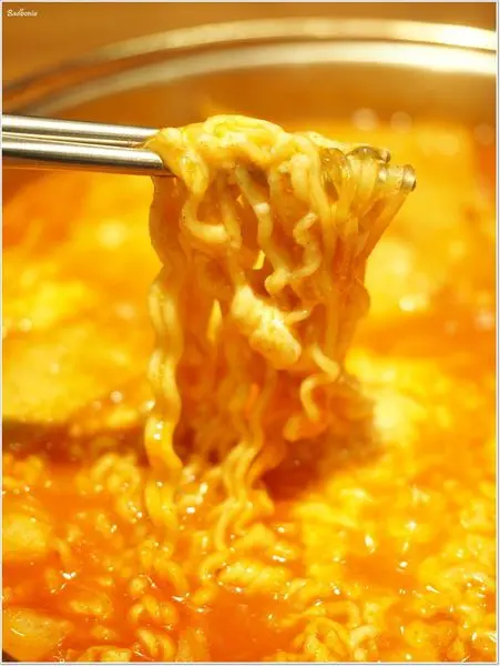 吃韓式鍋物料理,少了這個韓式拉麵就少了一味!XD等鍋子裡的湯有點小滾時就可以將拉麵放進去煮。