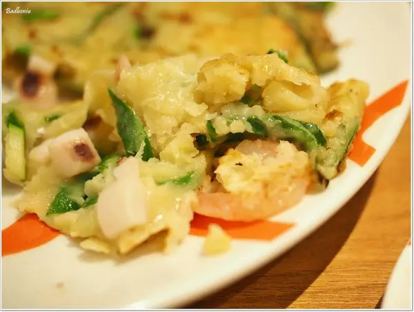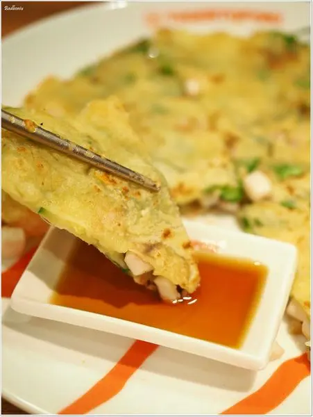 海鮮煎餅的沾醬酸酸的,還蠻開胃的。
