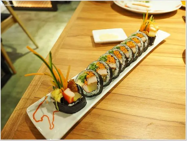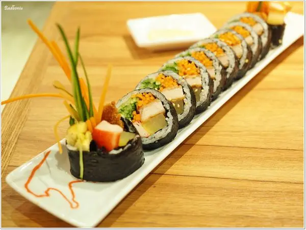 今天點的是炸豬排紫菜包飯,很好吃,而且裡面的料很豐多樣,連小黃瓜絲及紅蘿蔔絲都切得好細,很精緻。