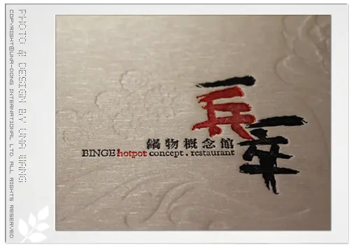兩片落地玻璃窗自動門,一近來的擺飾也太典雅了,還是一大片,好漂亮!完全不像是麻辣鍋店(五顆星的裝潢)整間店屬於黃色調,有溫馨的感覺,採光也很優,店員為我們遞上menu,超有質感的設計~還有壓紋呢!