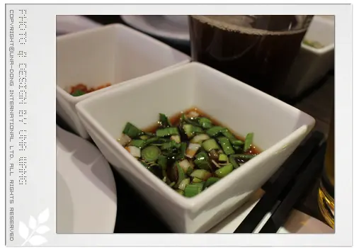 桌面上早已準備了兩種醬料:金華火腿醬、醋醬(我的愛),醋醬在各間麻辣鍋店垂手可得,金華火腿?這還是我第一次吃到,味道濃郁不會死鹹,餐點還未上桌就吃了小小一口,很期待等等與肉搭在一起吃的新口感