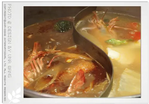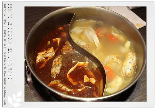 期待已久的鍋底上桌囉,我們選擇的是麻辣鍋與昆布鍋的組合,原本也想嚐試看看椰香咖哩鍋,但想想兩邊都重口味的話沒得緩和阿,聽說也不錯吃,下回可以嘗試看看!