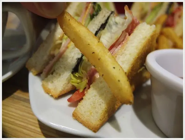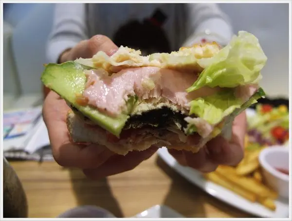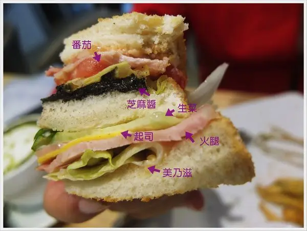 一般三明治可能不大會放黑黑那一層,尚未吃進去前,