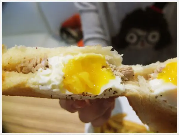 於是很可憐改了唯一的鹹點太陽蛋吐司鮪魚口味,