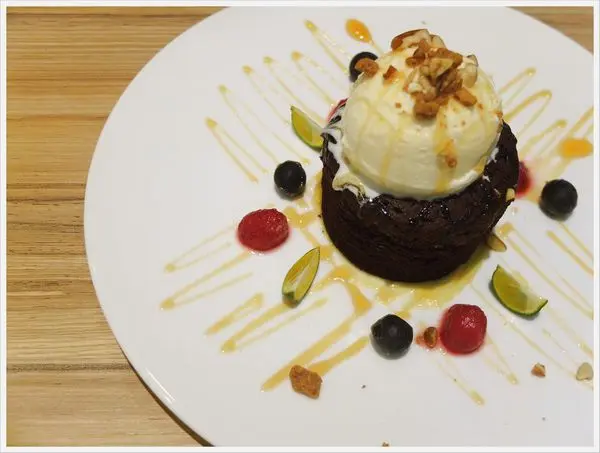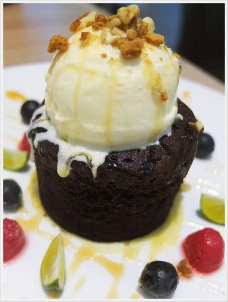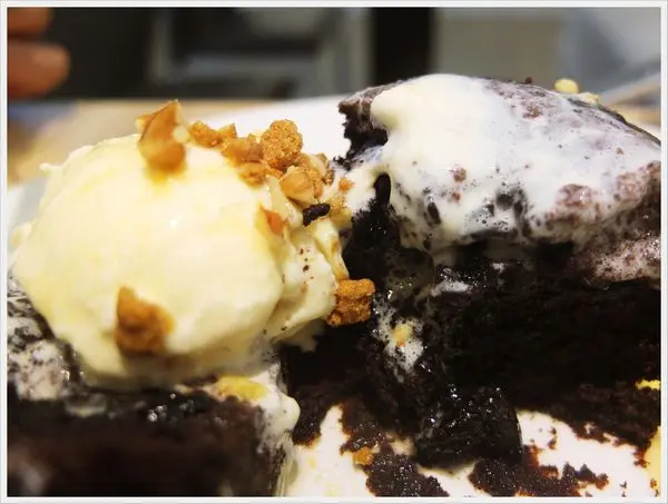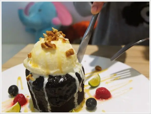 上面冰,巧克力內體熱,切開的瞬間都可以看到冒出些微的煙,