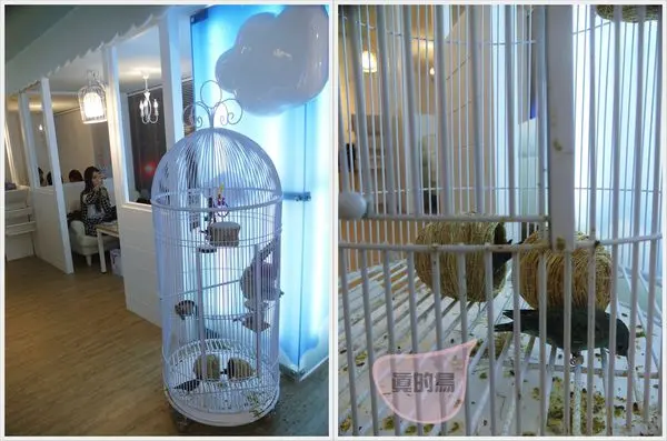 包廂外有大鳥籠,裡面是真的有鳥兒呢!