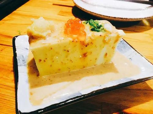 上方有蔥、蒜、鮭魚卵,胡麻香氣足,很喜歡這道前菜唷!