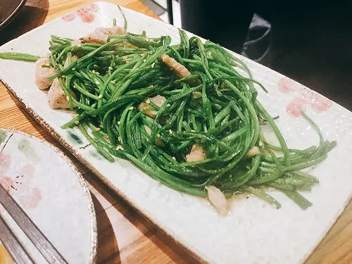 ★黃金六兩豬炒水蓮 $140