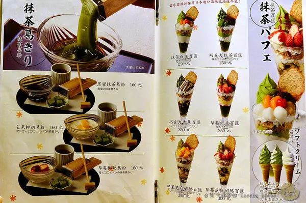 一打開來,一頁頁綠油油的抹茶商品映入眼簾,真不虧是抹茶控朝聖店啊!!!