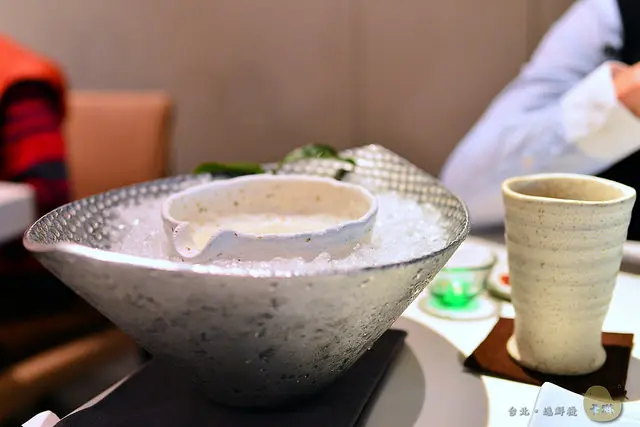 我們的大吟釀是由店員一次次的倒在這冰塊中間的容器中~