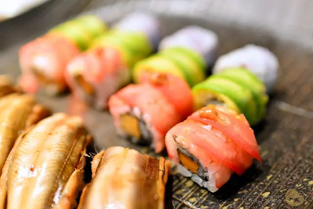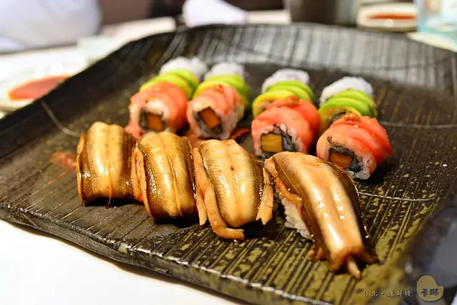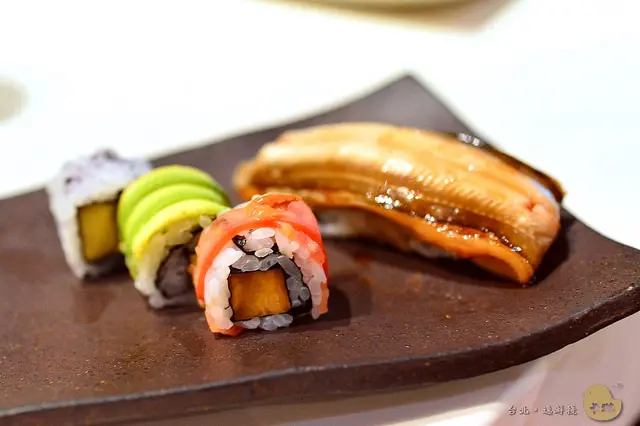 這一盤壽司就更可愛了,除了星鰻的之外,另外三種是蔬果的~!!!