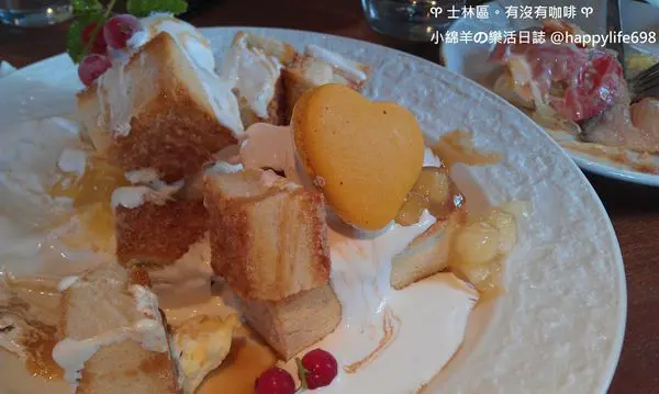 每一份蜜糖吐司都有一小片心型的蛋白霜,吃起來超級無敵甜>"<