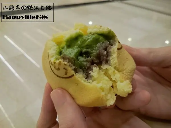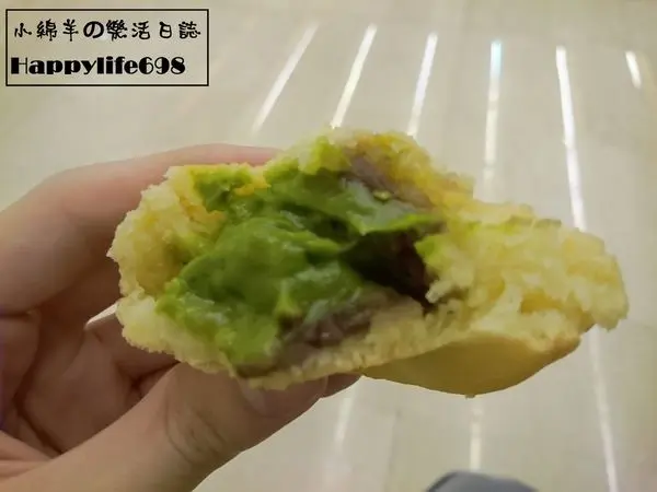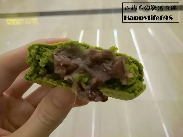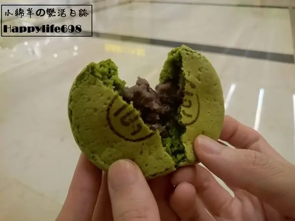 最外層稍微帶有酥脆的口感,餅皮厚而不乾,咀嚼之間散發出濃濃的抹茶香,味道則有抹