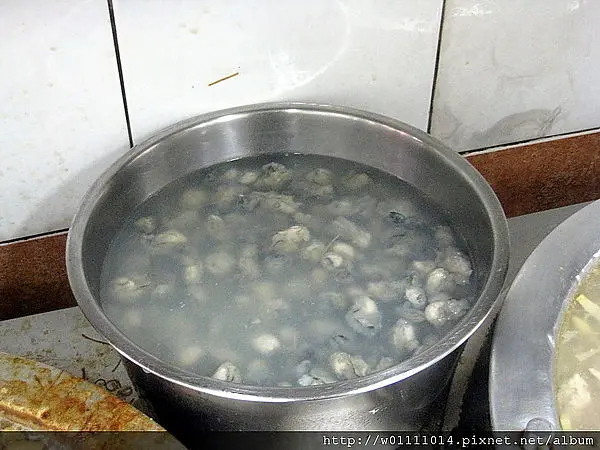 發現這鍋蚵仔~是有客人點的話,才盛好麵線另外加上去的~