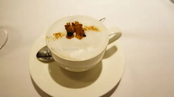 牛肝箘卡布奇諾。來這裡你可以不點牛排,因為能在其他間牛排館嚐到類似風格和味道(尤其是鄧有癸師傅曾經待過的一些餐廳),但類似牛肝箘卡布奇諾這款湯品,只有在教父牛排、Danny&Company等直營店(?)才能嚐到這樣的口感和風味。