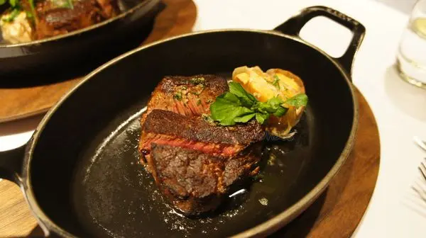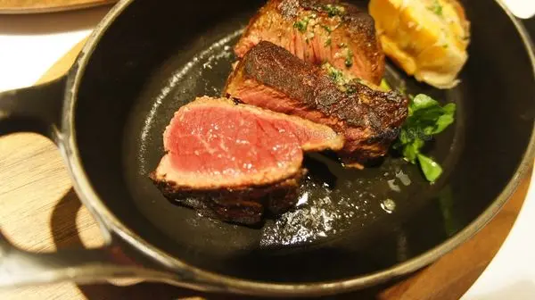 在米其林指南裡特別被提到的「菲力老饕牛排」,選用的是菲力牛排中間那段,也就是菲力心。菲力口感本就柔軟,菲力心這段的肉質更是柔嫩。