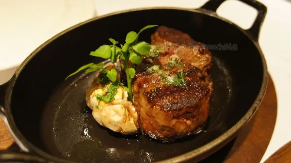 與友人的頂級菲力牛排比較,從外觀上來確實比較細皮嫩肉些,實際口感也有差異,友人認為這盤菲力老饕肉質更好吃。以往我都是點油花多的肋眼,喜歡牛油在口中迸出的香味,這次難得吃了一次菲力,雖然好吃但我還是比較喜歡肋眼~
