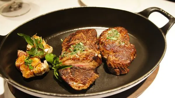 兩位據說是第一次吃米其林餐廳的友人,不約而同點了「美國頂級菲力牛排」