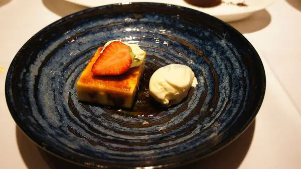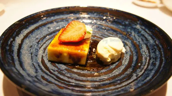 甜點:布蕾。長方形的是布蕾,上面有一層不薄的焦糖,布蕾本身充滿蛋香,非常美味。
