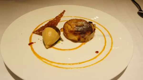 甜點:蘋果塔。蘋果塔一上桌還是熱的,旁邊搭配的是焦糖冰淇淋(跟熔岩巧克力一樣)。