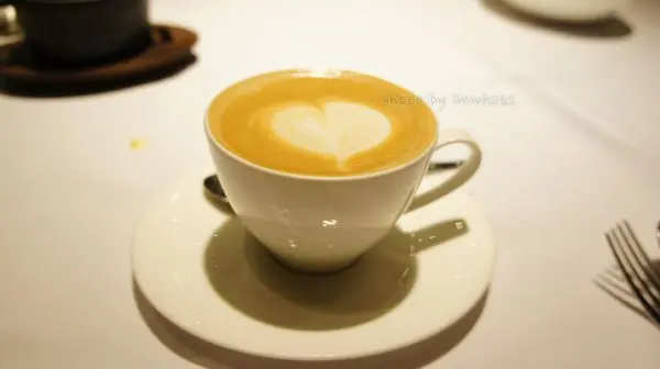 奶泡已消的熱拿鐵。餐後有咖啡和茶可以選~