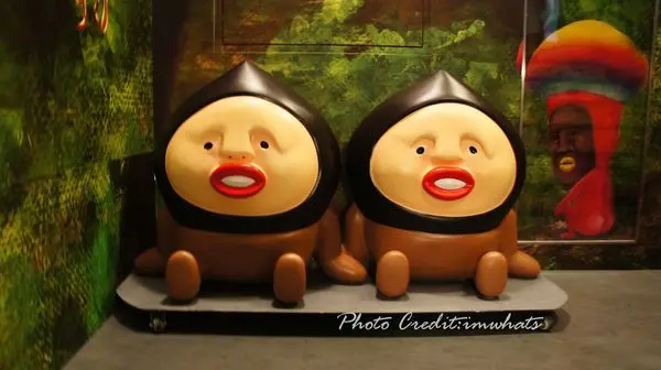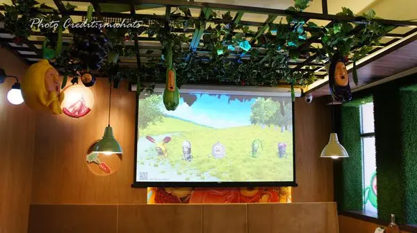 醜比頭真的有療癒人心效果!大螢幕上除了有餵食醜比頭的遊戲外,這次還有新花樣,可以用自己的臉創造屬於你的醜比頭角色,然後你做的這隻醜比頭就會跟著螢幕上的醜比頭們大跳體操,還蠻有趣的互動遊戲。