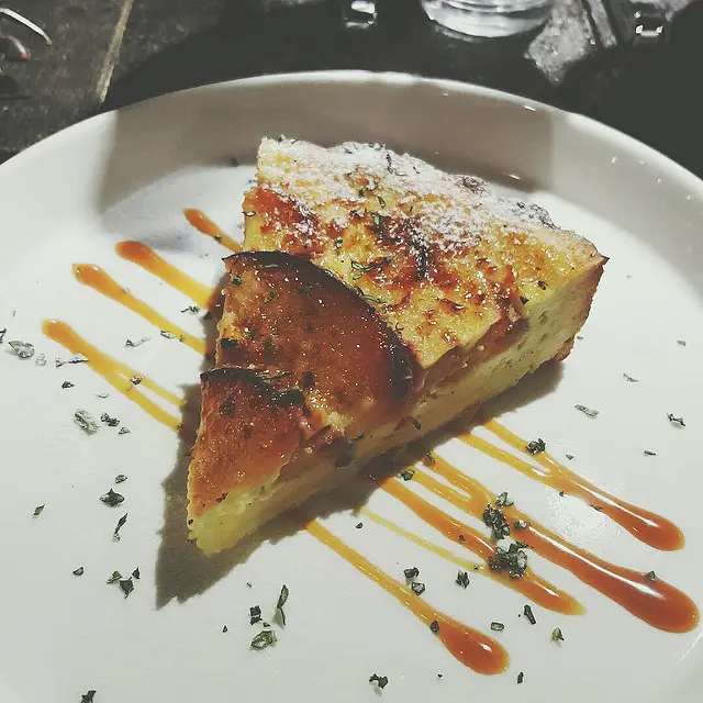 目前吃過算是甜度最高的一款甜品,雖然我是螞蟻所以比較無所謂,但如果真想吃又怕太甜,請務必一口蛋糕一口香草冰淇淋的食用,甜度會被遮掩過去,只吃得到楓糖和蘋果及肉桂的香氣,橄欖油製成的蛋糕體及起司口感的內餡,也隨之變得更加滑順易入口,非常好吃。