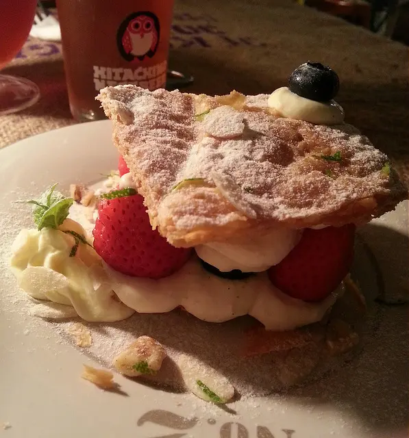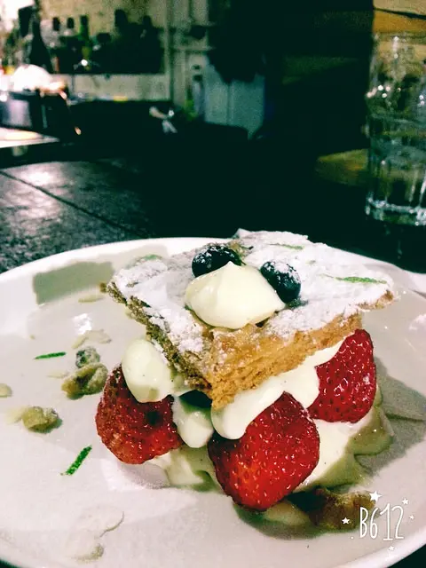 這也是每週二才會出現的限定商品。一層一層手工堆疊出來的千層派皮,酥脆的口感搭配上檸檬香草卡士達奶油霜以及新鮮莓果,反而口感清爽,再搭配上一壺熱茶或手沖單品黑咖啡,再適合不過。