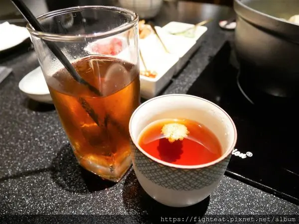 套餐會附上兩杯飲料,分別有熱洛神花茶及冰冬瓜茶,冰枸杞菊花蜜茶可以選擇