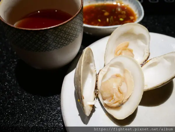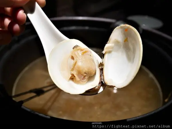 裏頭有基隆鎖管/兩顆牛奶貝/文蛤/鮭魚片