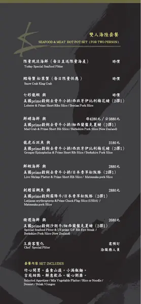 鮮蝦海鮮與美國Prime穀飼去骨牛小排/日本香草松阪豬(2擇1) NT:2880元