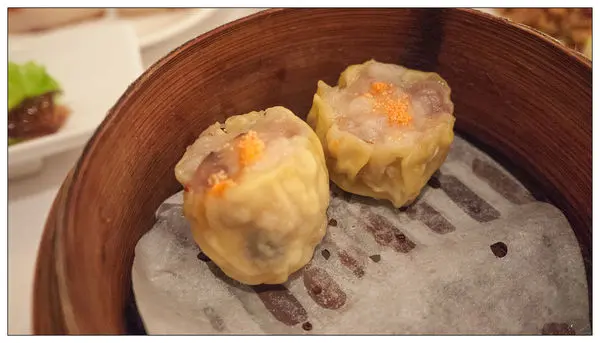 魚子蒸燒賣上面有放魚卵 口味表現也還有水準