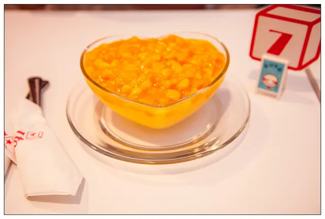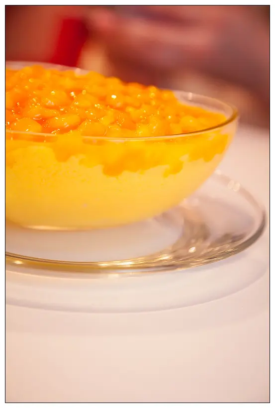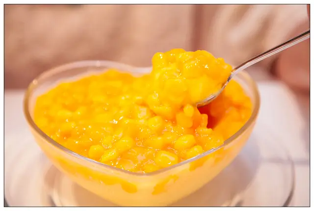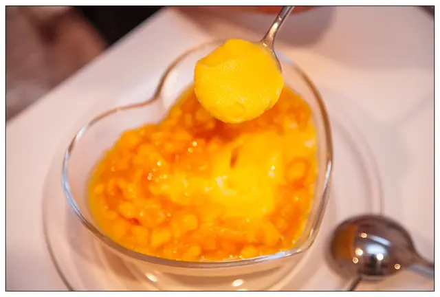愛心碗表層鋪滿了非常可愛的芒果粒