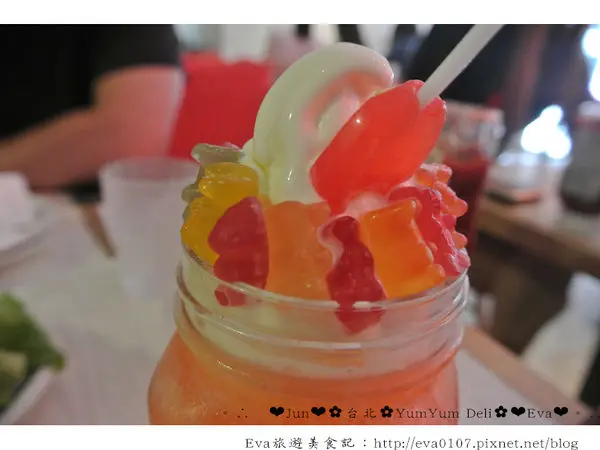 五顏六色的可愛小熊軟糖及棒棒糖,好創新的飲料哦!
