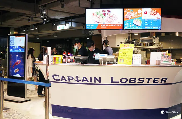 Captain Lobster位於信義新光三越A11地下二樓的美食街,鄰近捷運市政府站3號出口,步行約10分鐘,就在熱鬧的信義街頭,逛累了可以走進去享受美食,稍微休息一回兒,這兒賣的都是來自於海味的美食,所以吧檯也設計成船的造型呢。