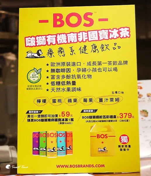 飲料的提供除了汽水及茶飲外,也有貼心提供適合孕婦及孩子也可以飲用的國寶冰茶,購買堡類即可以50元加購。