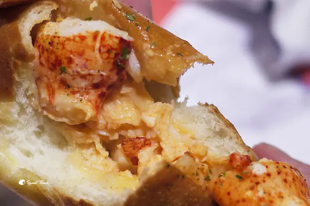 除了龍蝦肉夠霸氣外,裡面的佐料也是採用龍蝦沙拉製成的,這個龍蝦堡就是要你滿足的享受龍蝦呢。