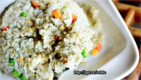 這茶香炒飯還真的不是蓋的,妳看看把米飯炒的粒粒分明