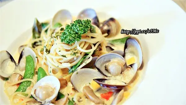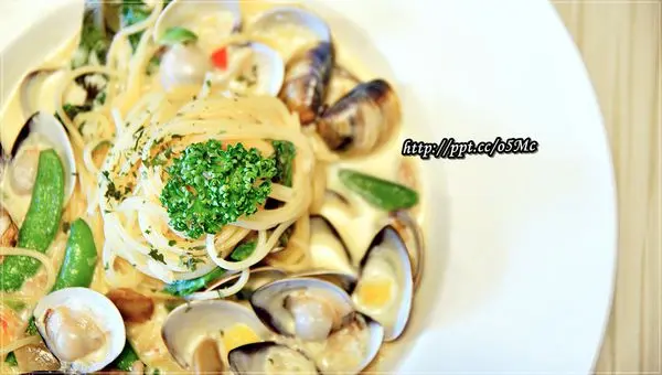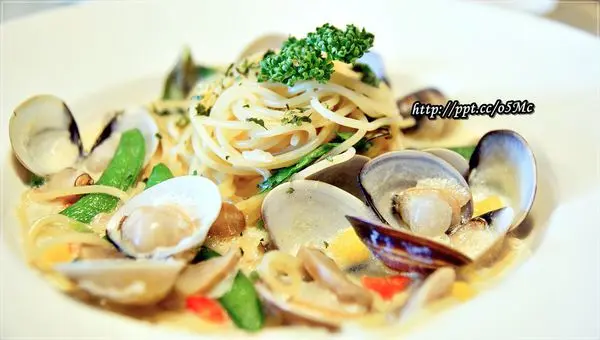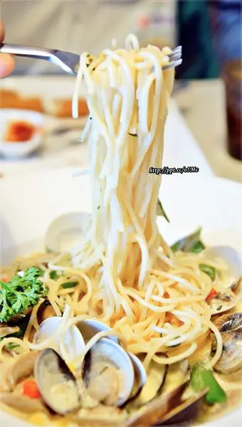 點了弟弟最愛的蒜味奶油蛤蠣義大利麵