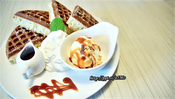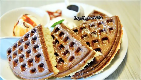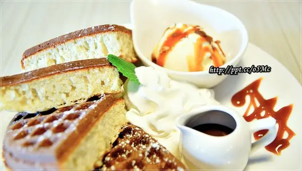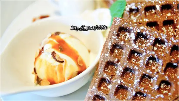 鬆餅沾著鮮奶油跟冰淇淋一起吃,味道真的是好極了