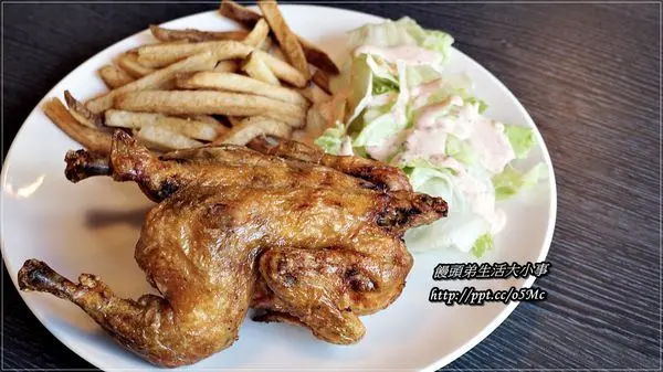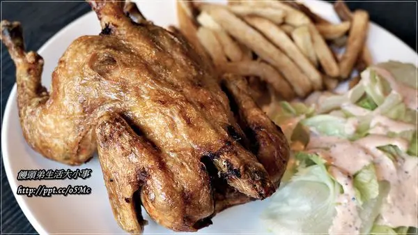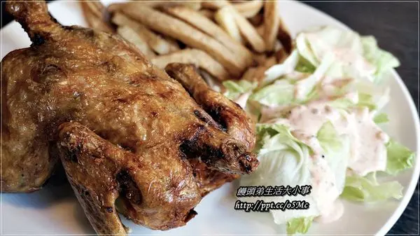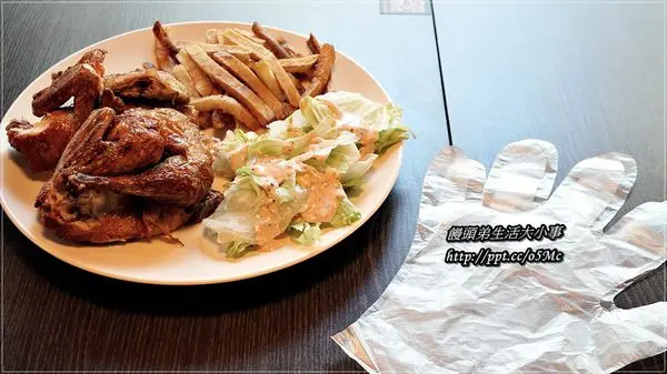 怕吃烤雞會太單調,一旁還有脆薯跟生菜可以搭配吃
