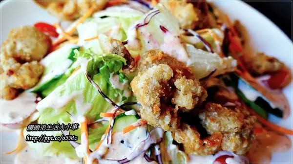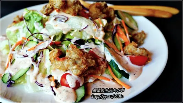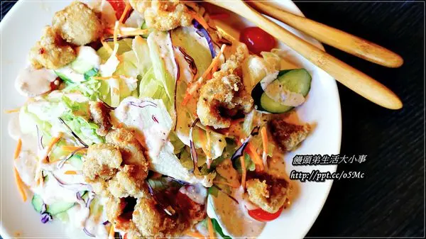 因為我本身也很愛吃沙拉,不過頭一回看炸雞跟沙拉結合