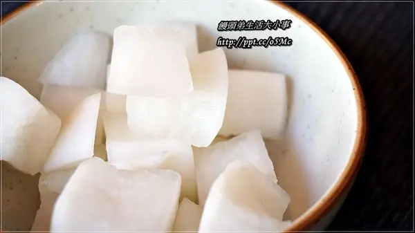 醃蘿蔔吃起來微酸(我超怕酸溜溜的味道),不過很脆味道也不錯