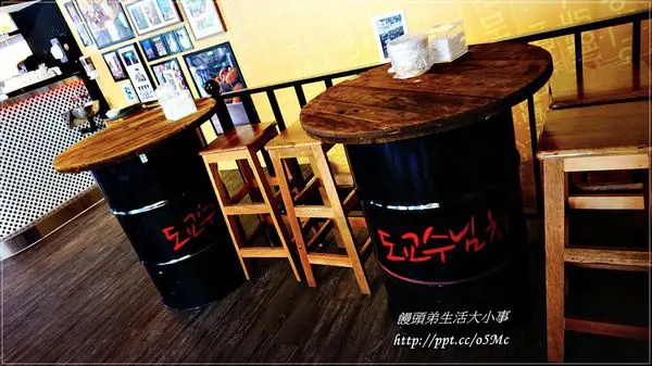 這一區的座位比較特別,是用鐵桶當桌子更有身處在韓國用餐的FU
