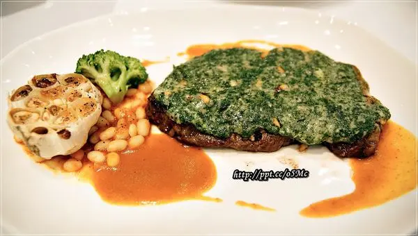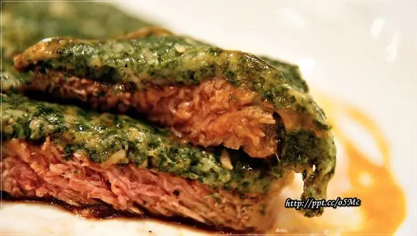 青醬搭配肋眼吃起來的口感真的是美味極了